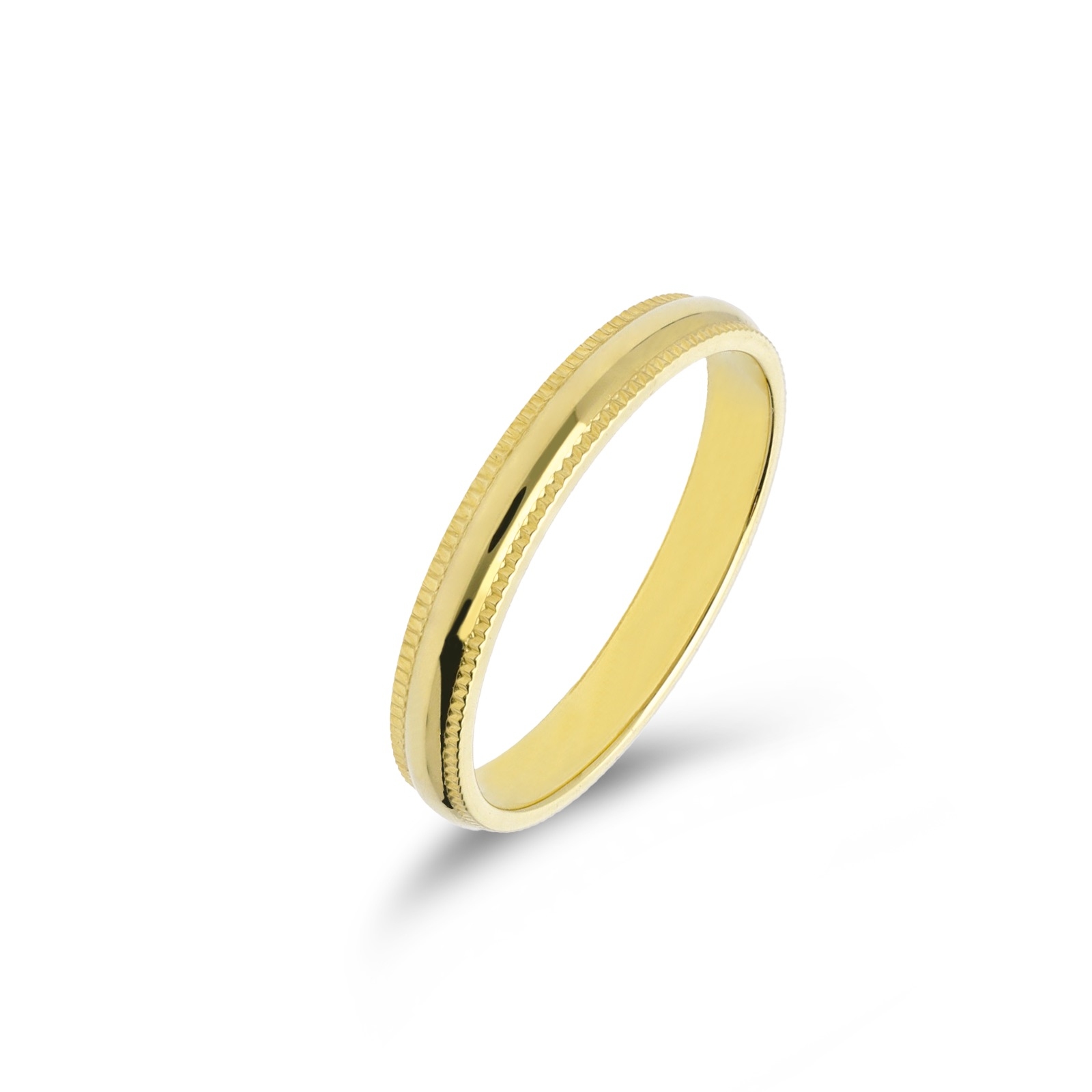 Fede matrimoniale in oro 18k, abbellita da una zigrinatura geometrica su entrambi i lati. Seppur classica, presenta un design più particolare che la rende la scelta ideale per chi desidera un anello moderno, comodo ma capace di distinguersi dalle tradizionali fedi nuziali. Si presenta inoltre liscia e in oro lucido che ne esaltarne la bellezza.