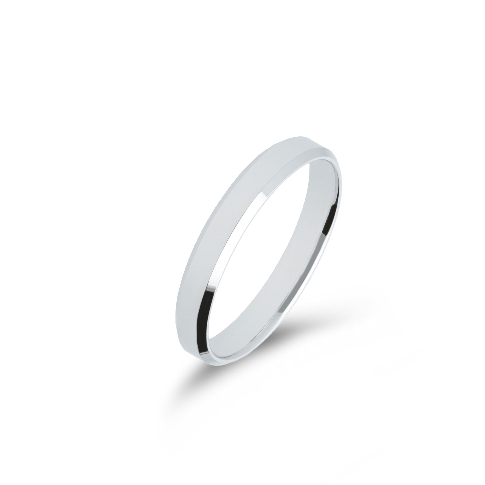 Fede nuziale liscia in oro bianco 18k dallo spessore di 3mm.