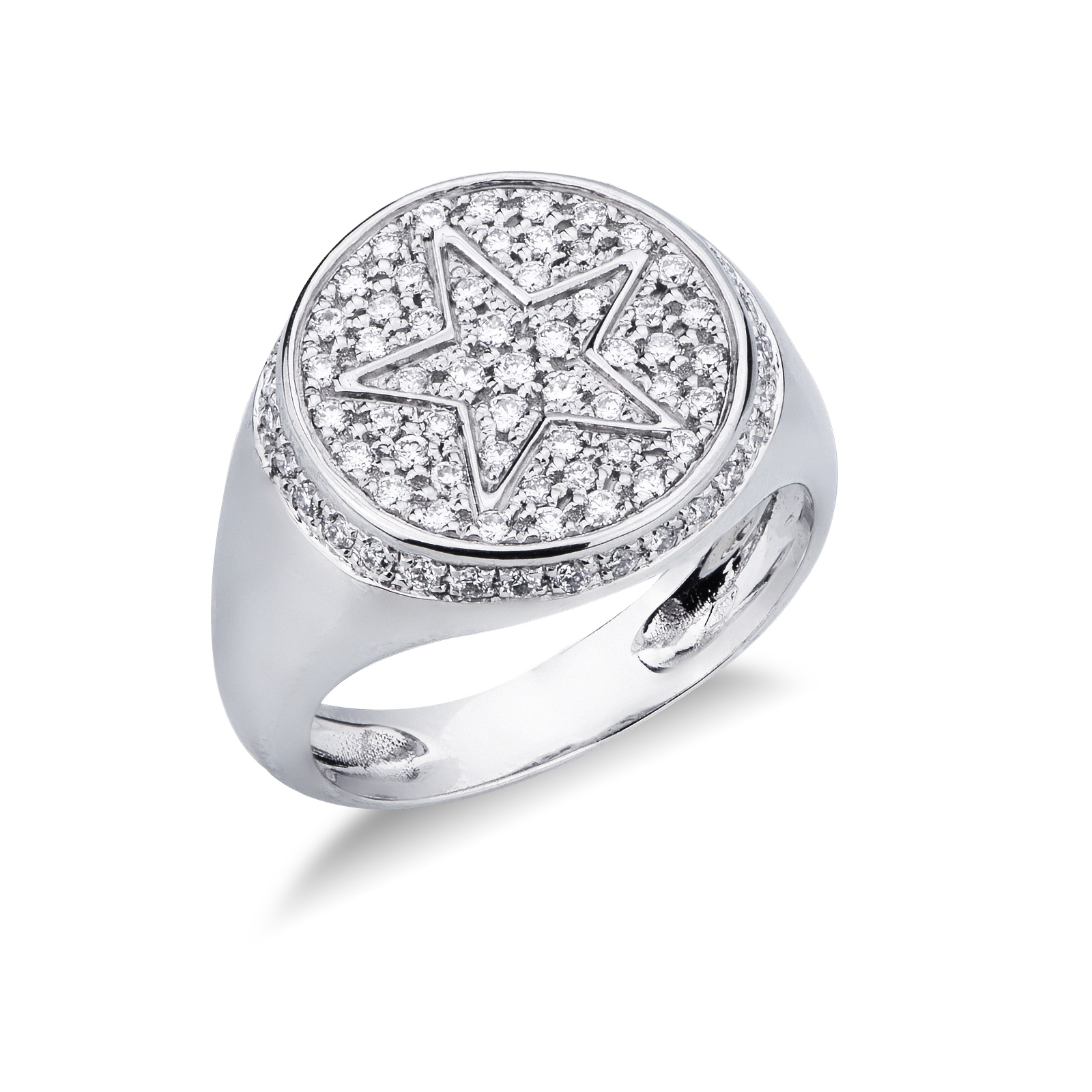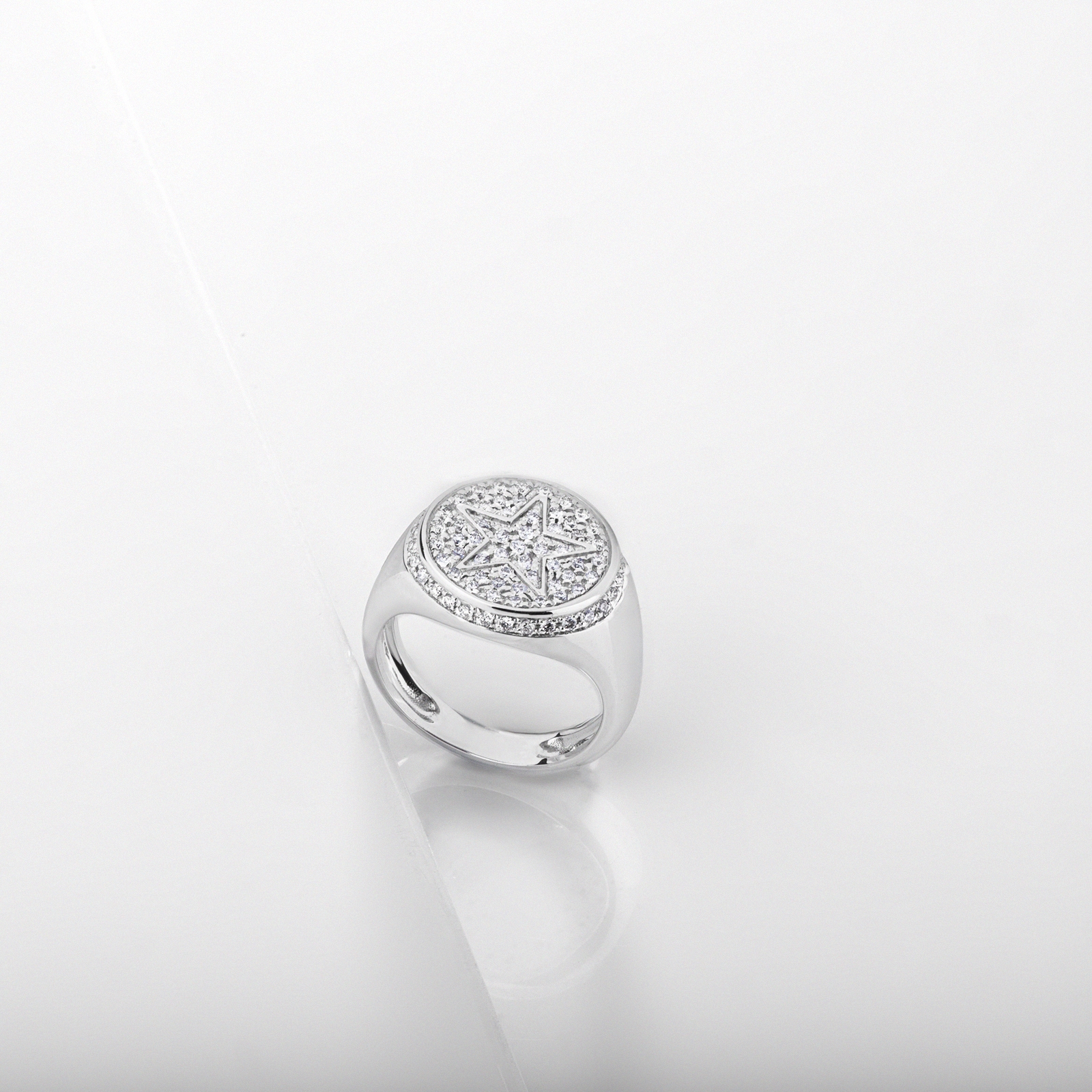 Anello chevalier con stella in oro bianco 750 con diamanti