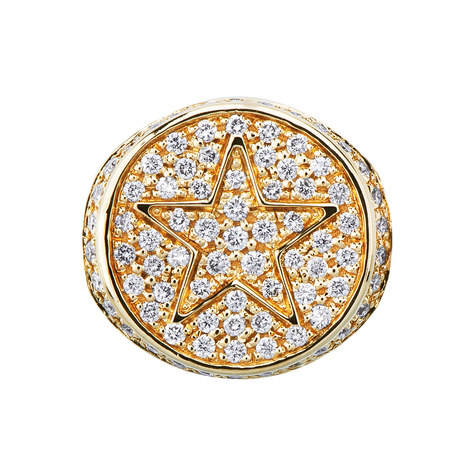 Anello chevalier con stella in oro giallo 750 con diamanti