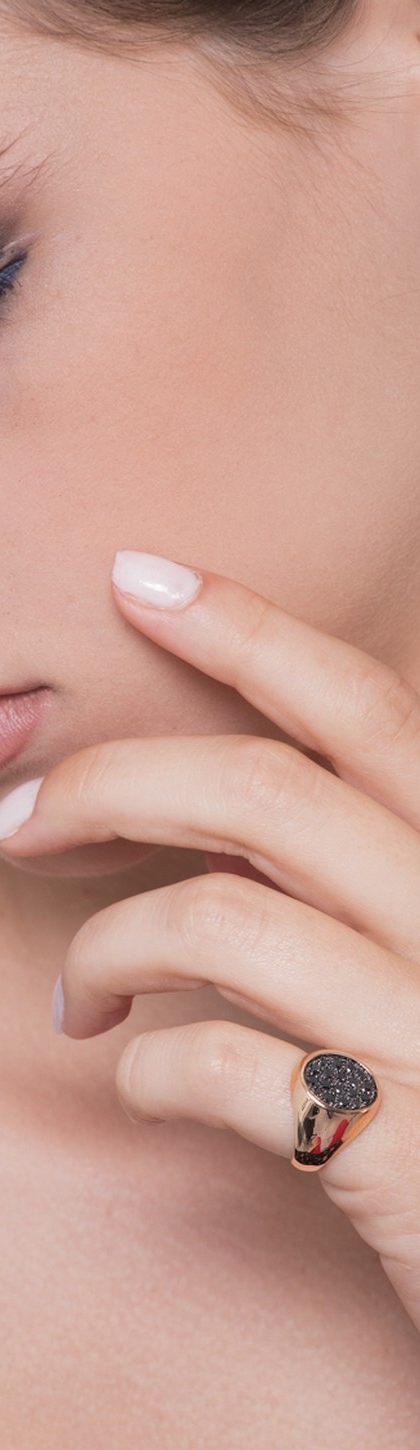 Anello in oro rosa 18k con diamanti neri