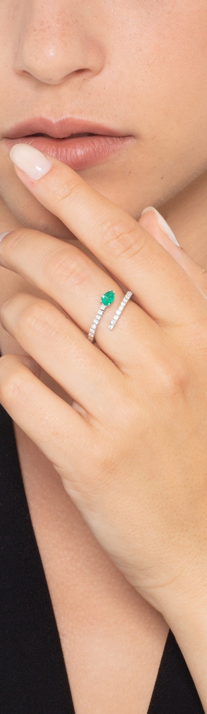 Anello a molla in oro bianco 18k con smeraldo e diamanti