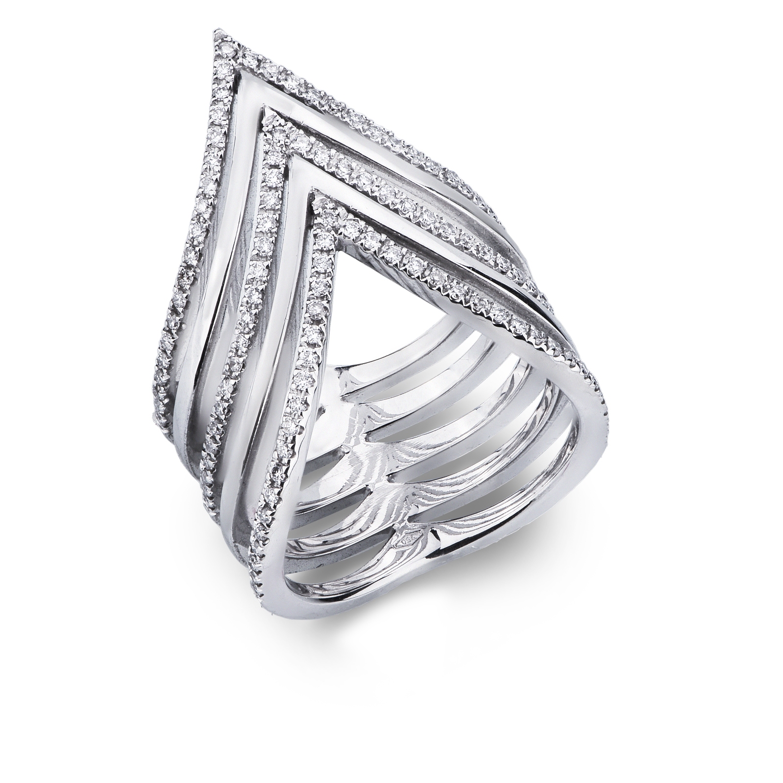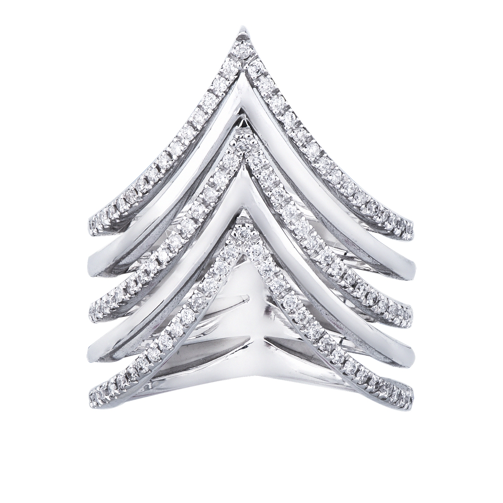 Anello a cinque file in Oro bianco 18k con diamanti