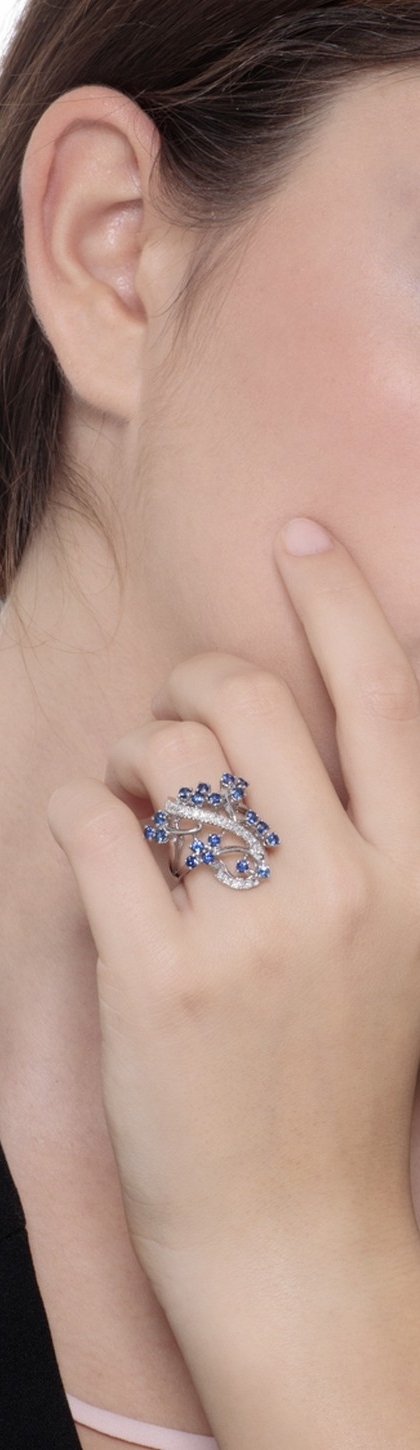 Anello fantasia in Oro Bianco 18k con Zaffiri blu e Diamanti