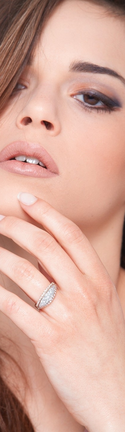 Anello da Donna in Oro bianco e rosa 18k, con incastonati nella parte centrale e sui bordi diamanti taglio brillante colore G e purezza Vs.