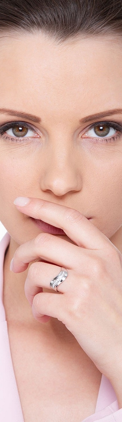 Anello Fascia ondulata in Oro bianco 18k con diamanti