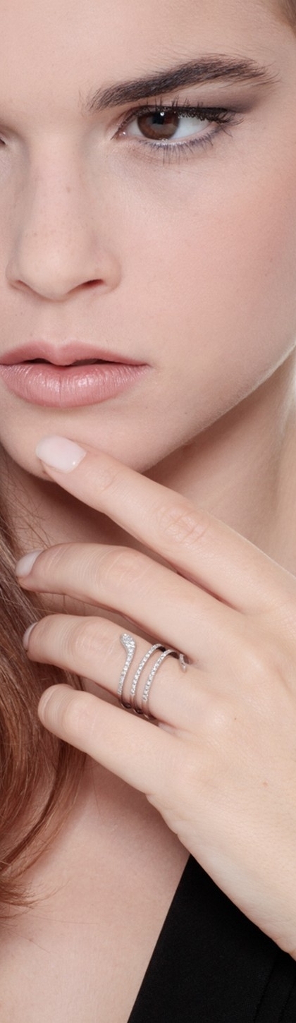 Anello in oro bianco 18k a serpente e Diamanti