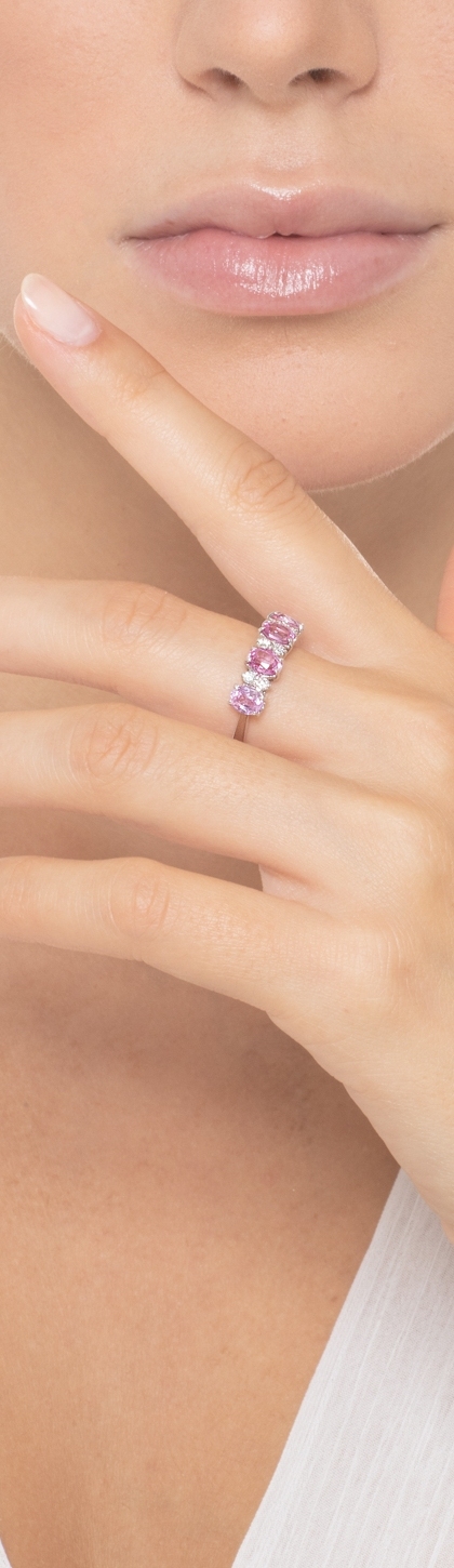 Anello in oro bianco 18k con 4 zaffiri rosa alternati a diamanti