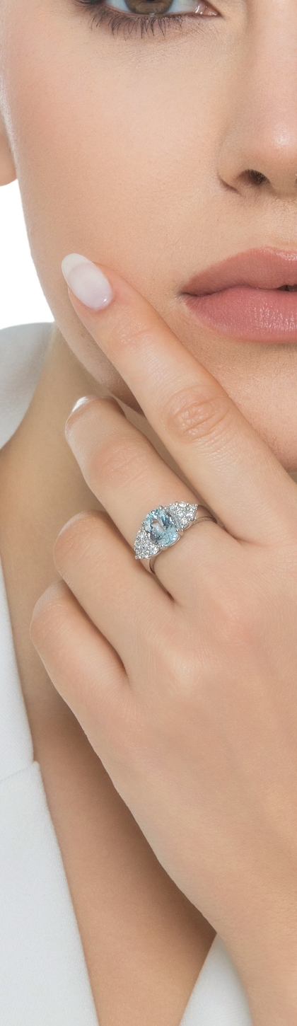 Anello in oro bianco 18k con acquamarina ovale e diamanti
