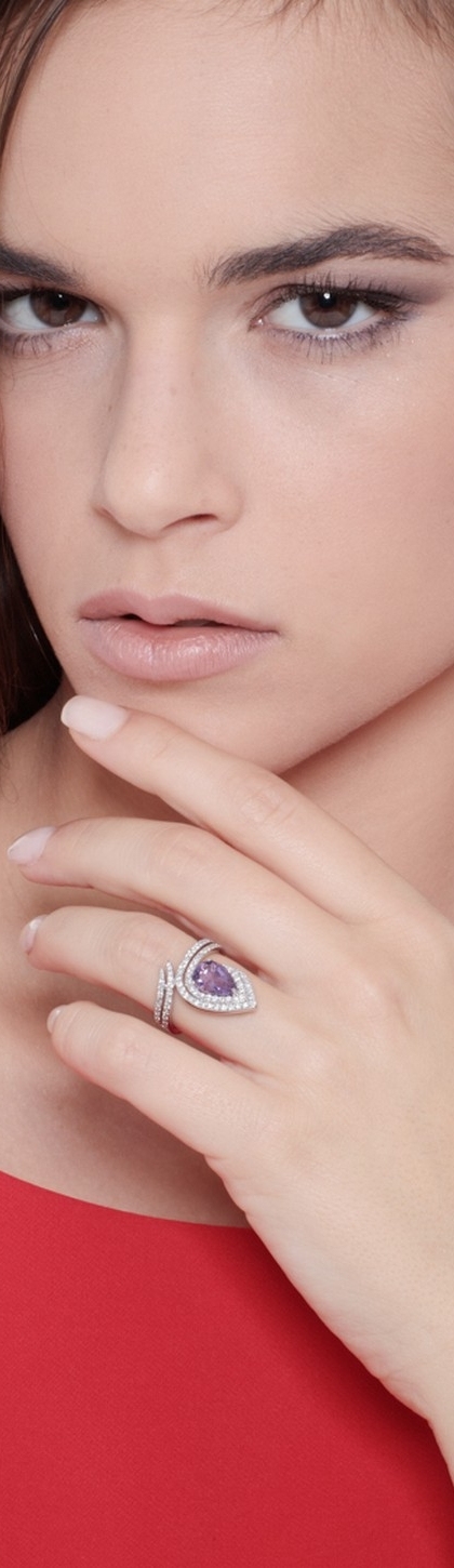 Anello in oro Bianco 18k con ametista a goccia e diamanti