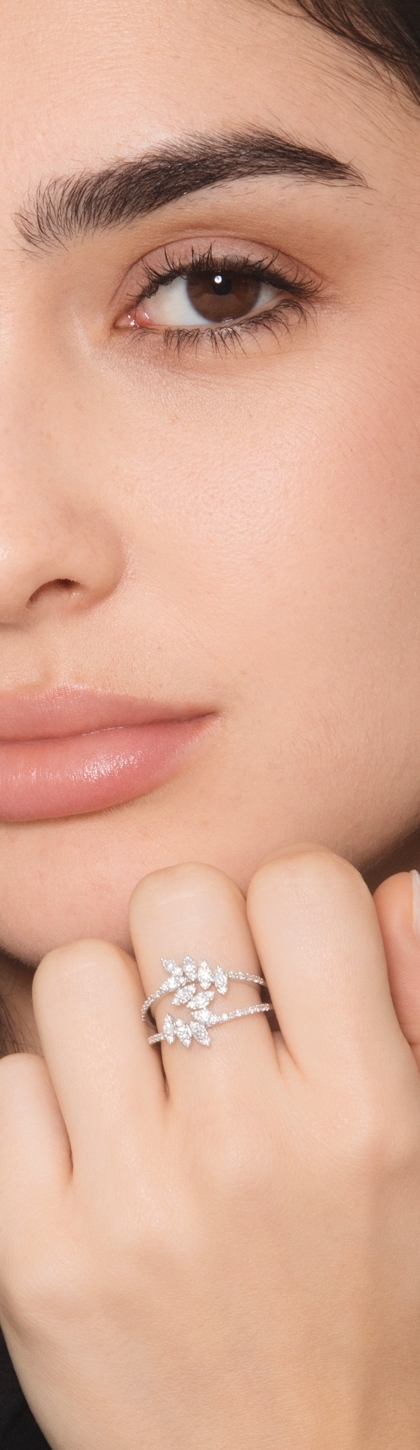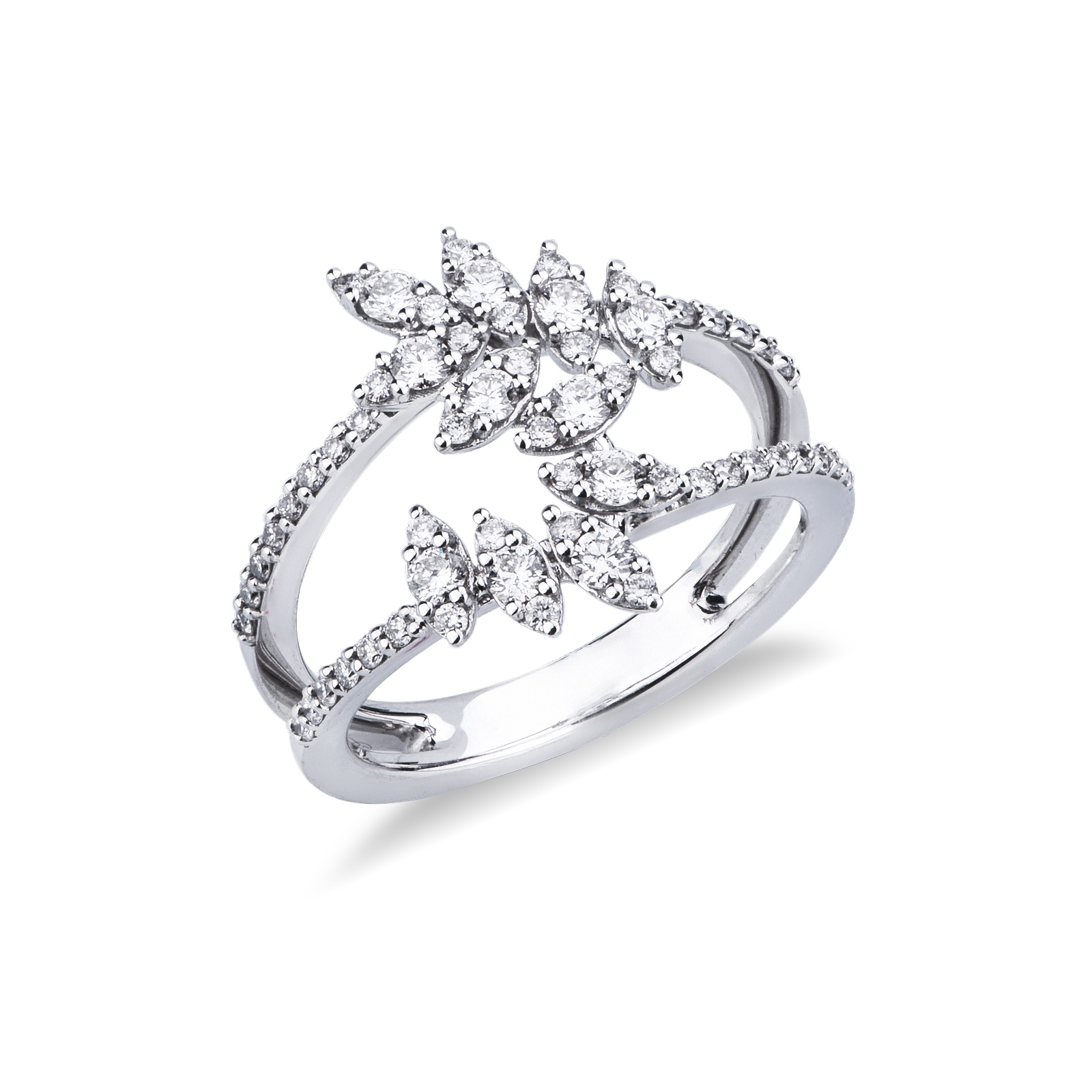 Anello in oro bianco 18k con diamanti a finte navette