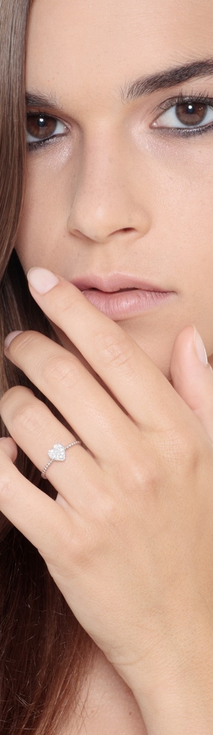 Anello in oro bianco 18k con diamanti e Cuore.