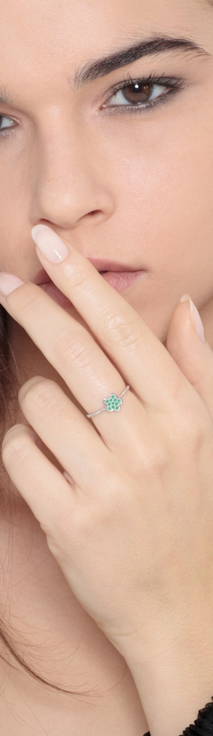 Anello in oro bianco 18k con Fiore in smeraldi