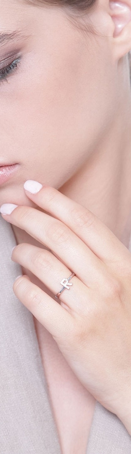 Anello in Oro bianco 18k con lettera R in Diamanti