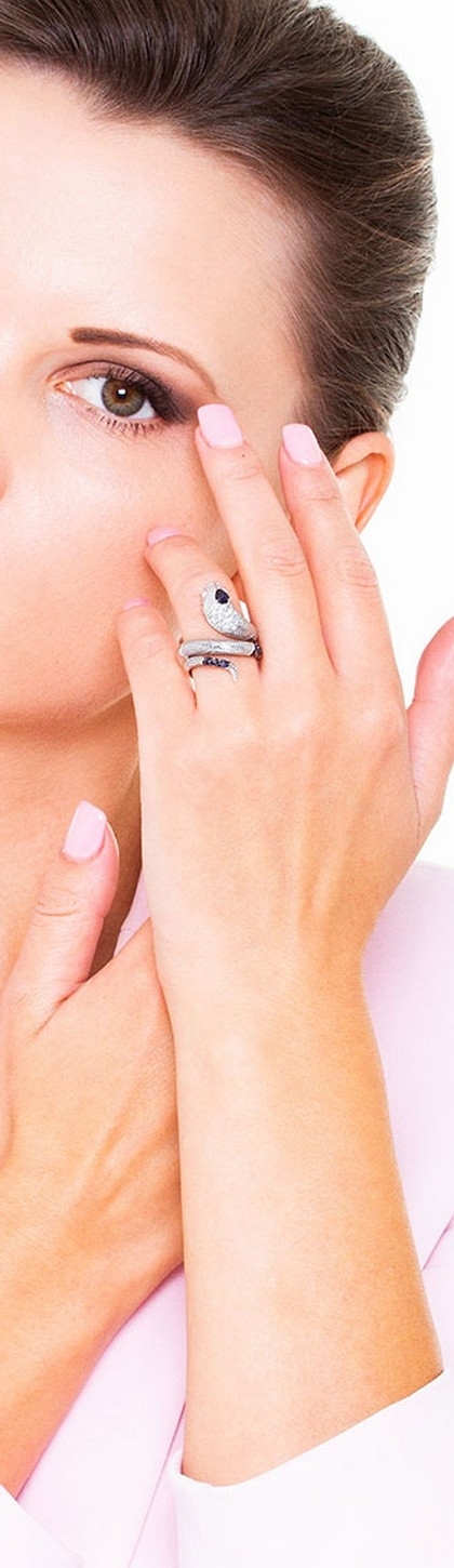 Anello in oro bianco 18k con serpente in zaffiri blu e diamanti
