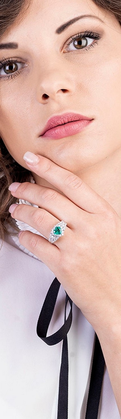 Anello in oro bianco 18k con Smeraldo a cuore e diamanti