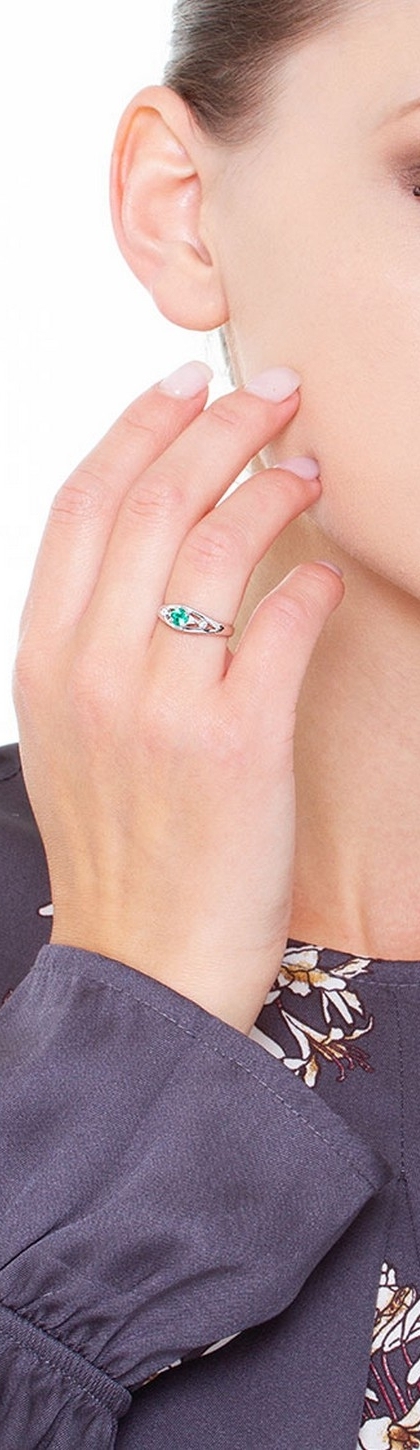 Anello in oro bianco 18k con smeraldo centrale e diamanti.