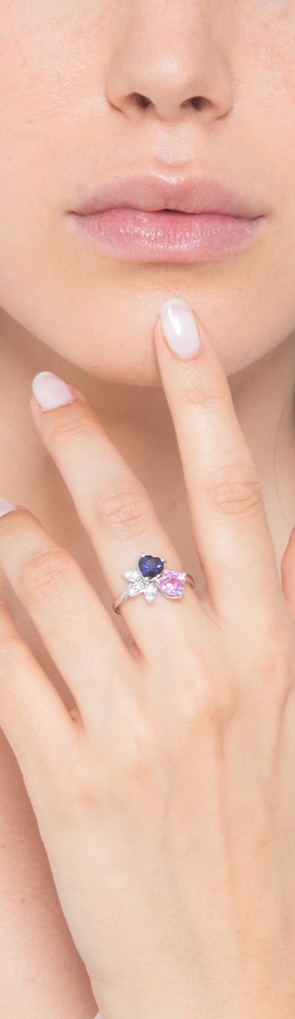 Anello in oro bianco 750 con zaffiro rosa, blu e diamanti