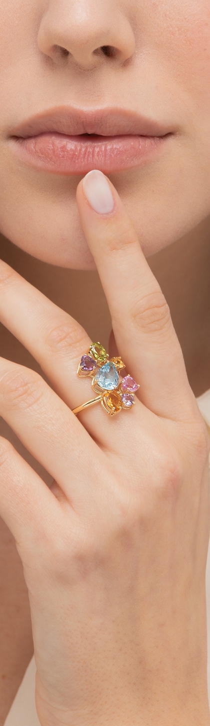 Questo anello in oro con pietre colorate Rainbow è pensato per chi ama un gioiello unico, elegante e capace di esprimere personalità attraverso il colore.
