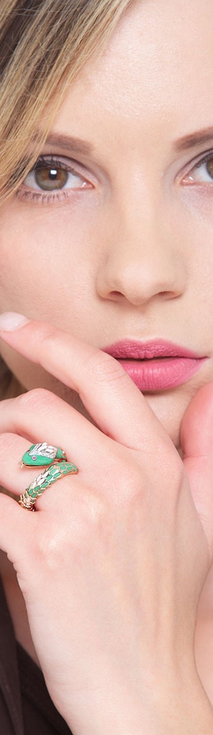 Anello in oro rosa 18k a serpente con diamanti e rubini