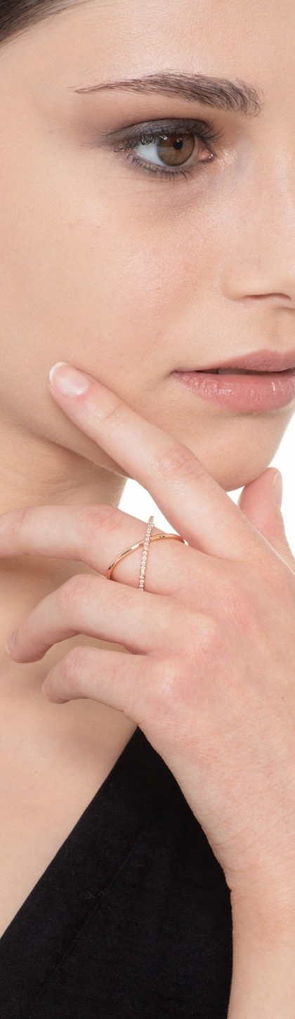 Anello incrociato in oro rosa 18k con diamanti