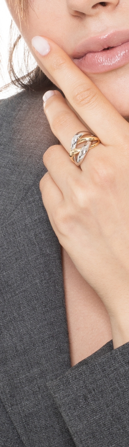 Oro bianco e giallo si intrecciano in una parure che parla di stile e personalità.