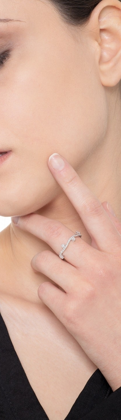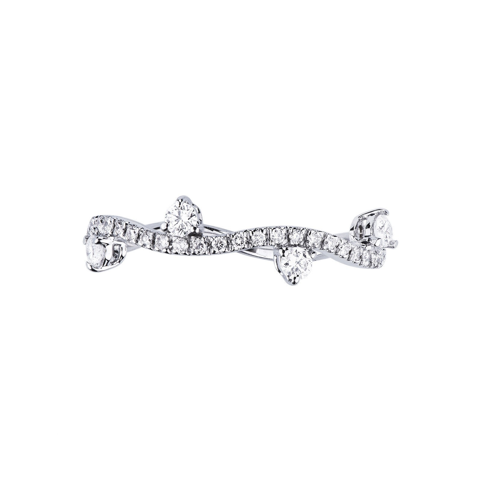 Anello ondulato fantasia in oro bianco 18k con Diamanti.