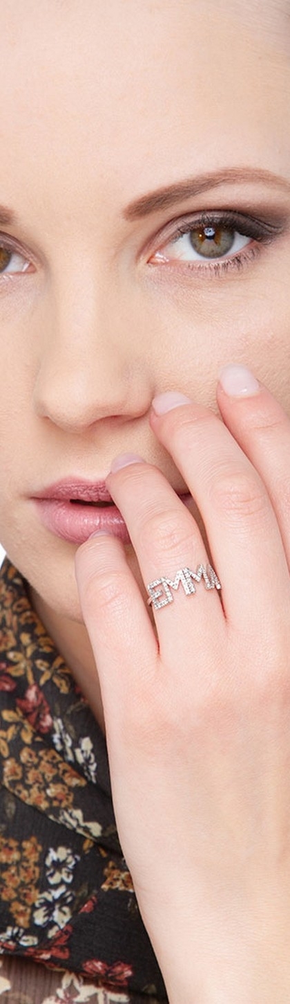 Anello in Oro bianco 18k, con il nome EMMA incastonato di diamanti taglio brillante colore G e Purezza Vs.