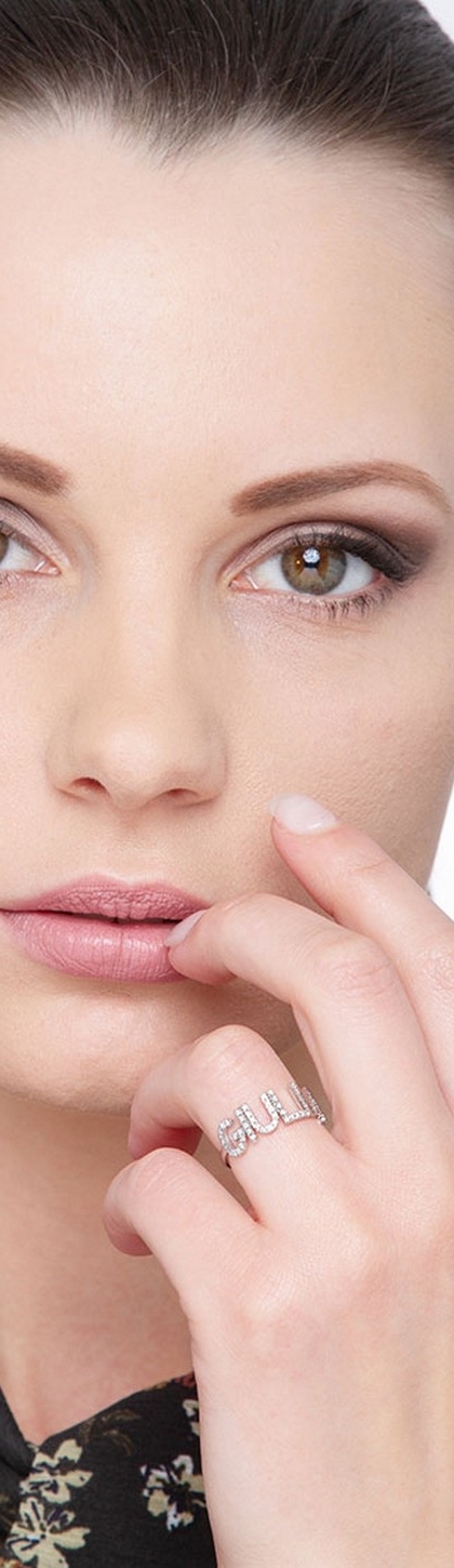 Anello in Oro bianco 18k, con il nome GIULIA incastonato di diamanti taglio brillante colore G e Purezza Vs.