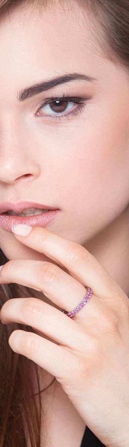 Anello Eternity a griffe in Oro Bianco 18k con Zaffiri Rosa
