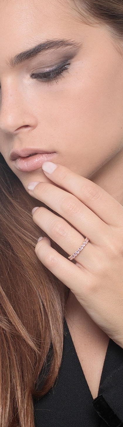 Anello Eternity a griffe in Oro Giallo 18k con Zaffiri Rosa
