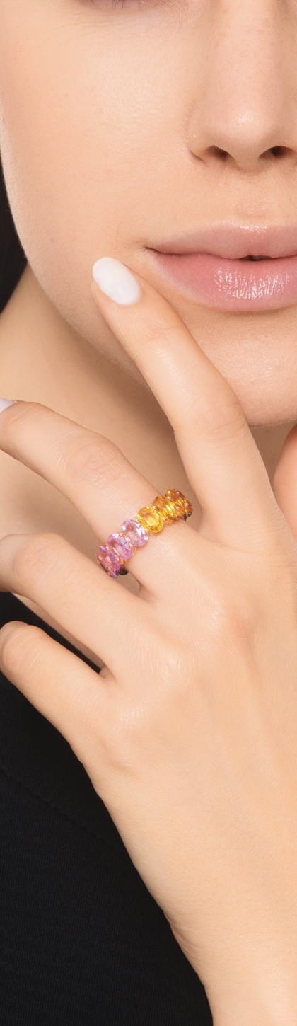 Anello eternity in oro rosa 750 con zaffiri multicolor rainbow ovali