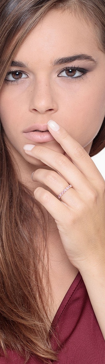 Anello modello Eternity a griffe in Oro Rosa 18k con Zaffiri Rosa