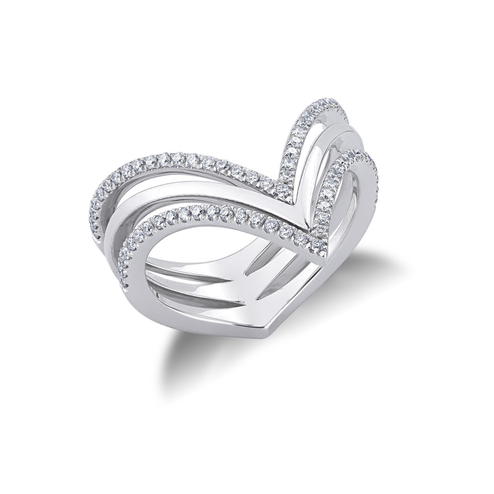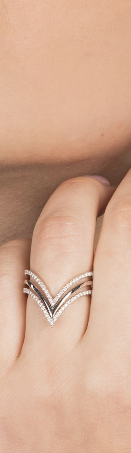 Anello a 3 file in oro bianco 18k con diamanti