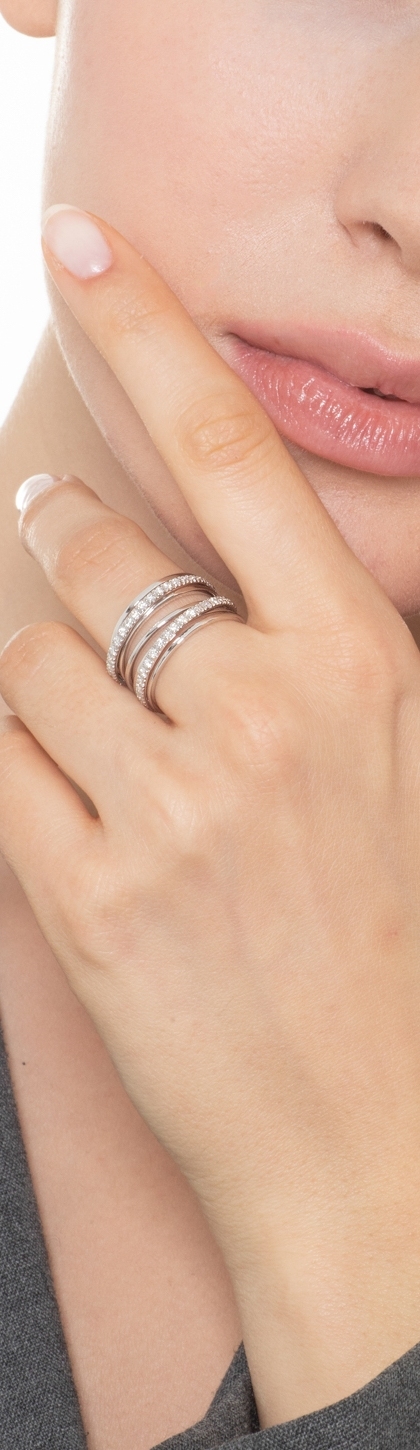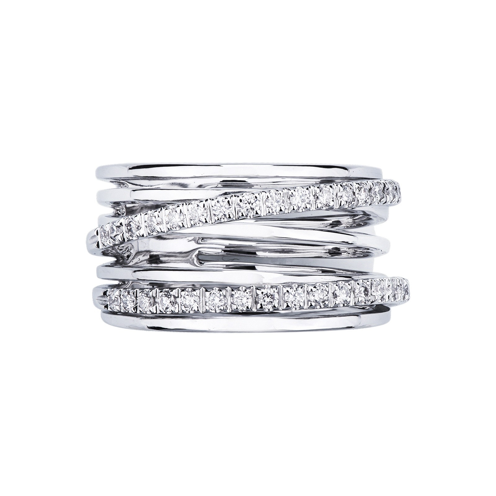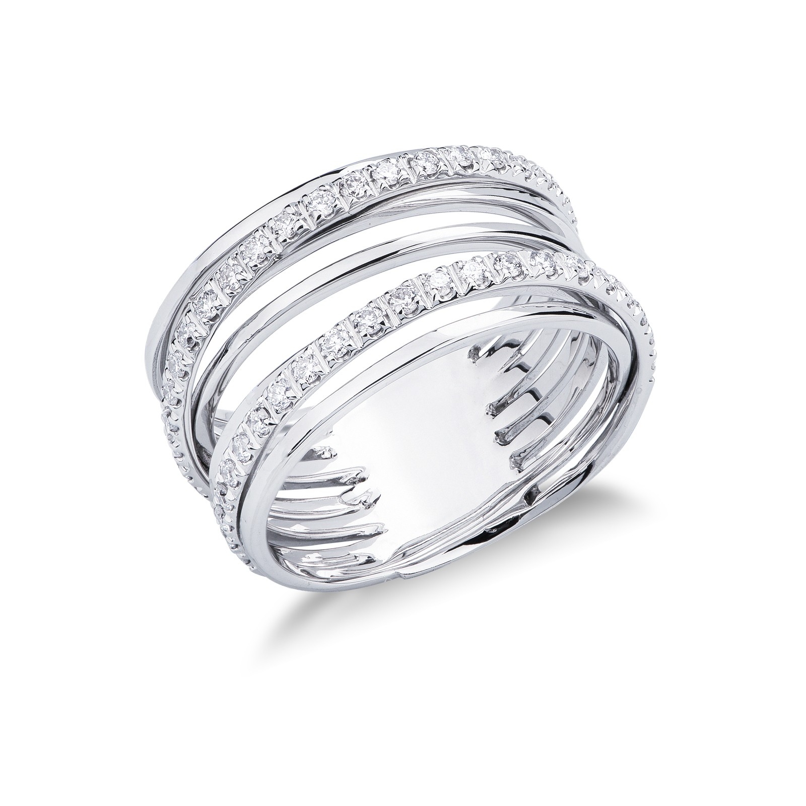 Anello a fascia con cinque file in oro bianco 18k con diamanti