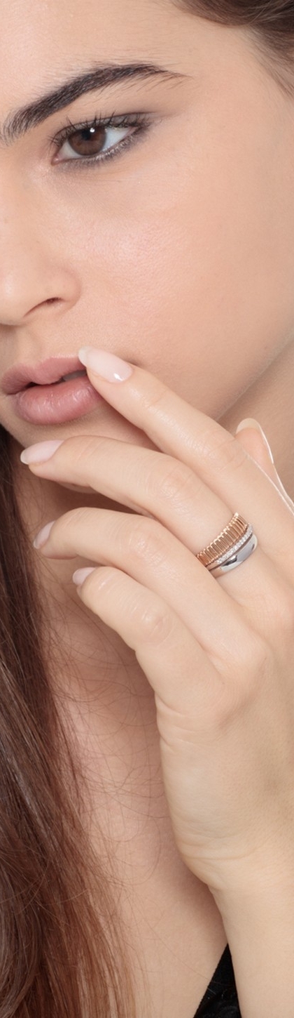 Anello a fascia in oro bianco e rosa 18k con diamanti