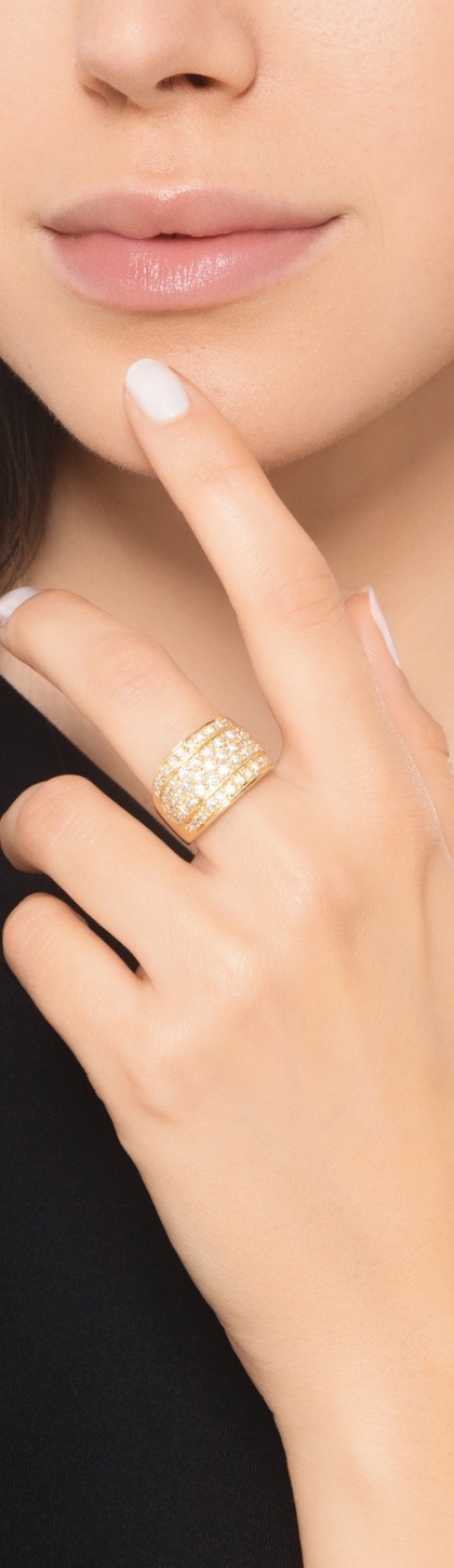 Anello a fascia in oro giallo 750 con file in diamanti