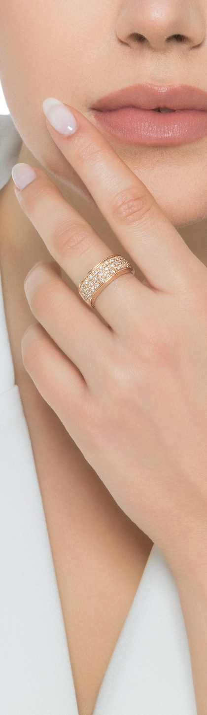 Anello a fascia in oro rosa 750 con diamanti