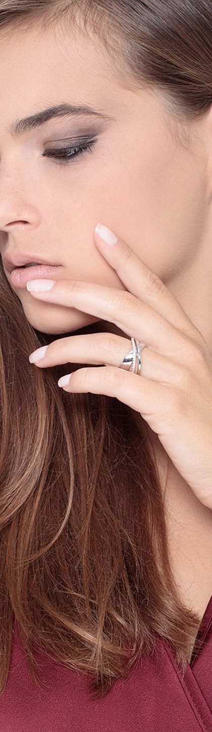 Anello a fascia incrociata in oro bianco 18k con diamanti