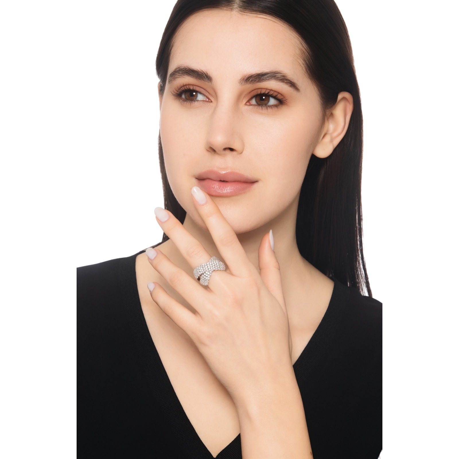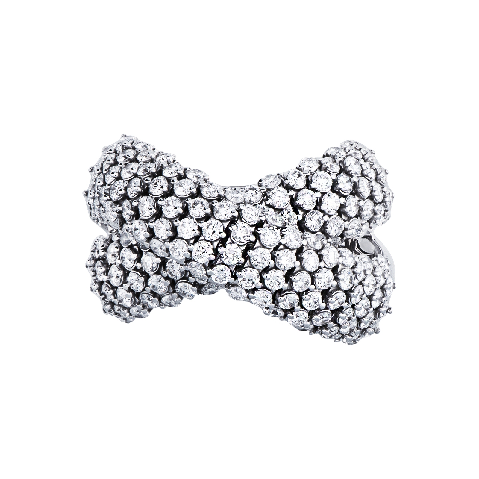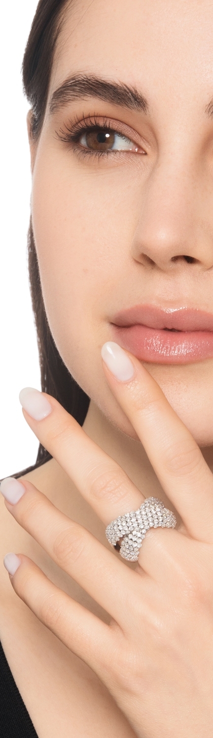 Anello a fascia incrocio in oro bianco 18k con diamanti