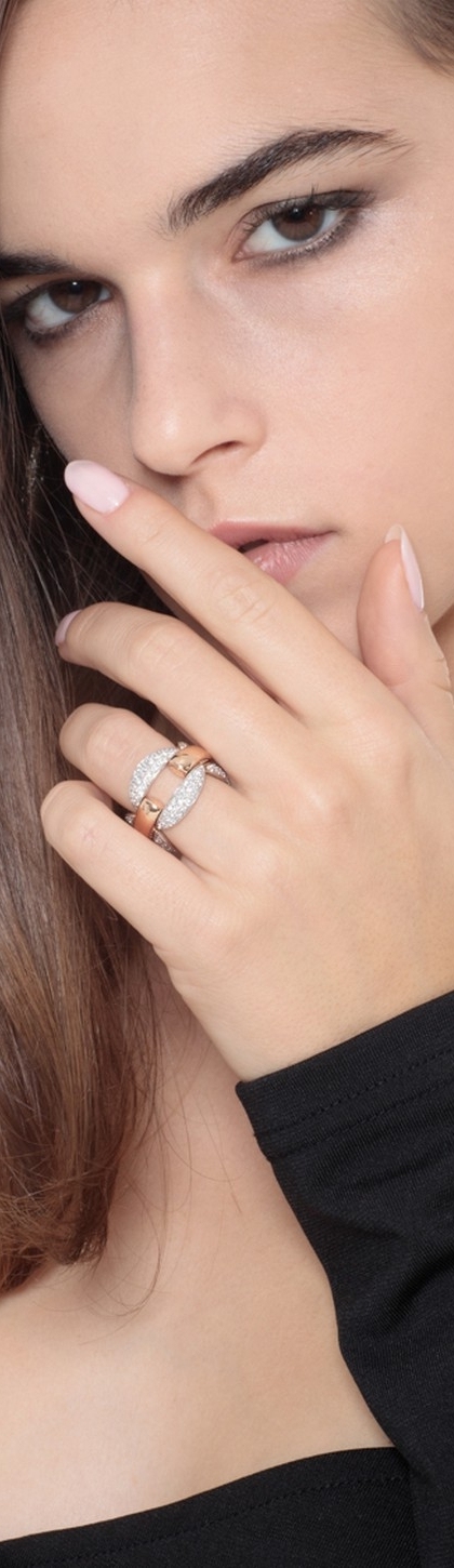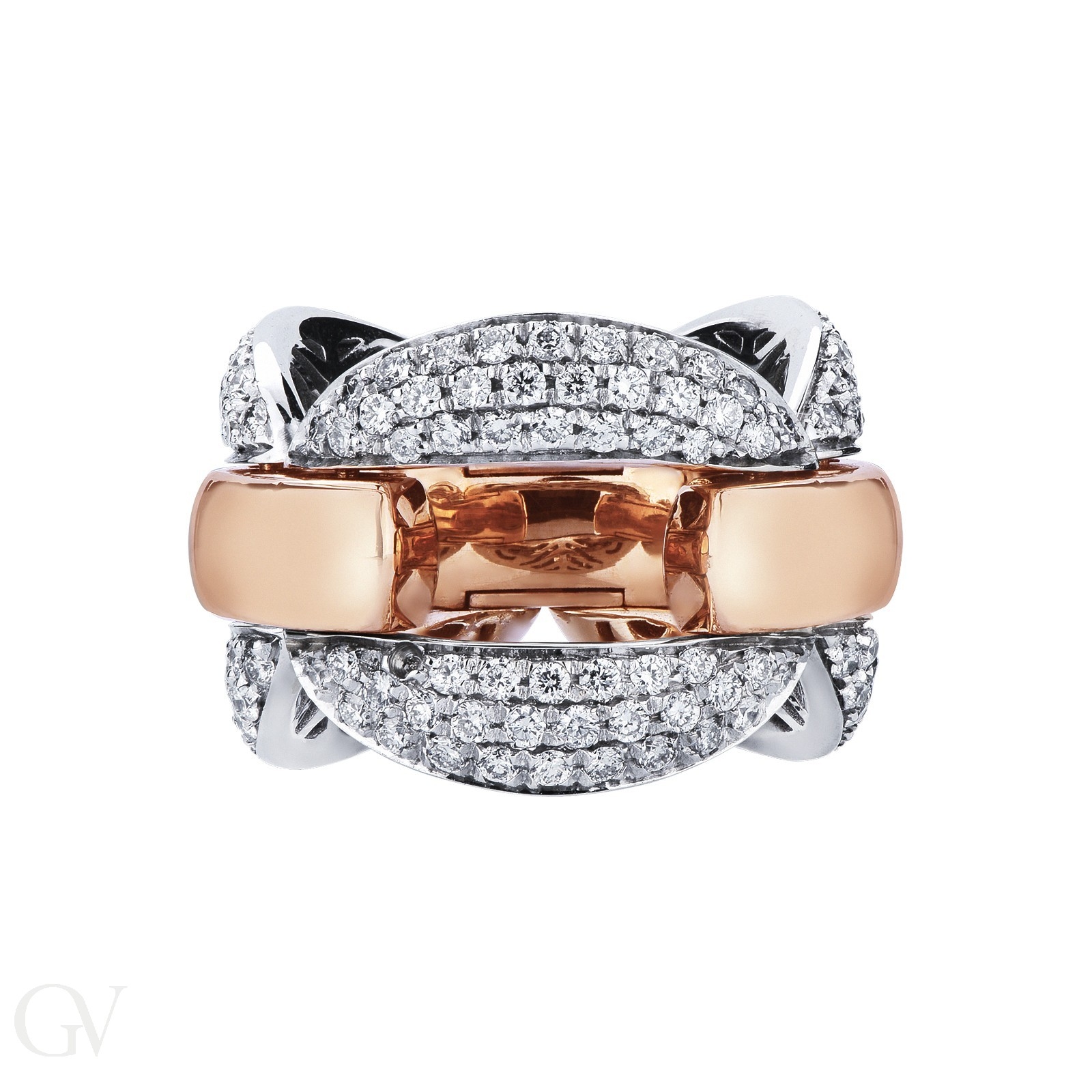 Anello a maglia morbida in oro bianco e rosa 18k e diamanti