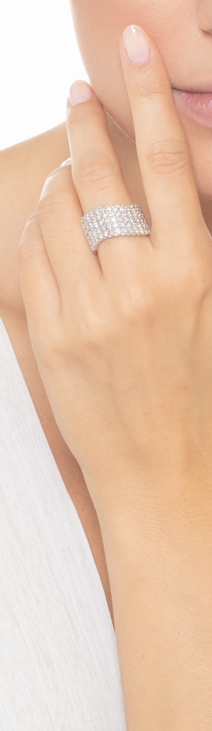 Anello fascia con motivo a onda in oro bianco 18k con diamanti