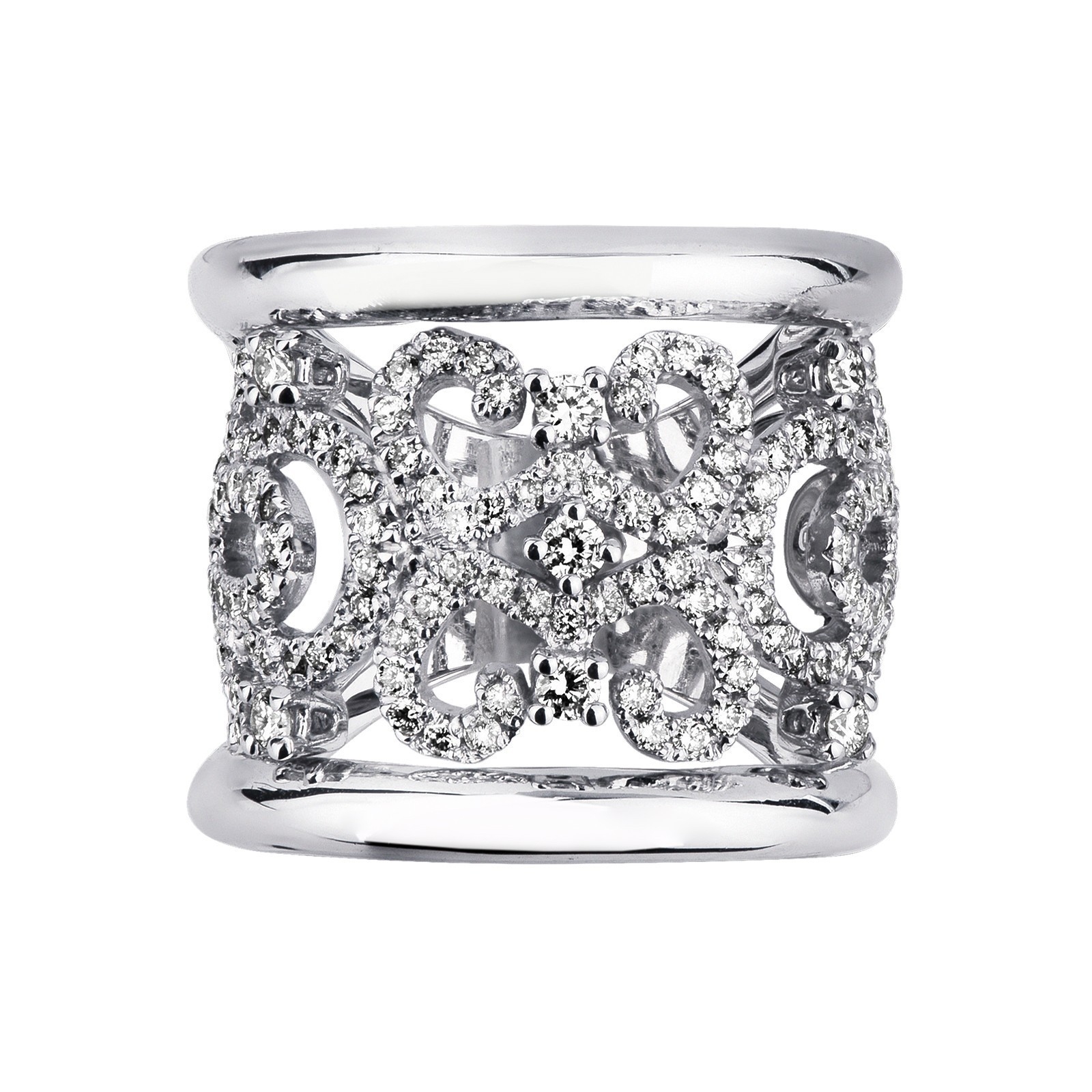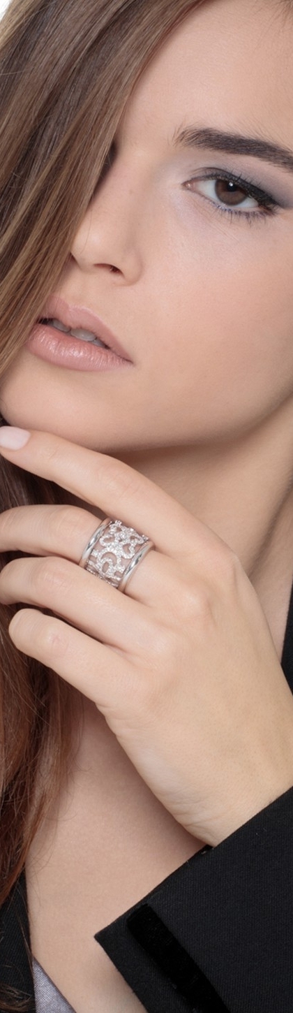 Anello fascia con ricamo in Oro Bianco 18k con Diamanti