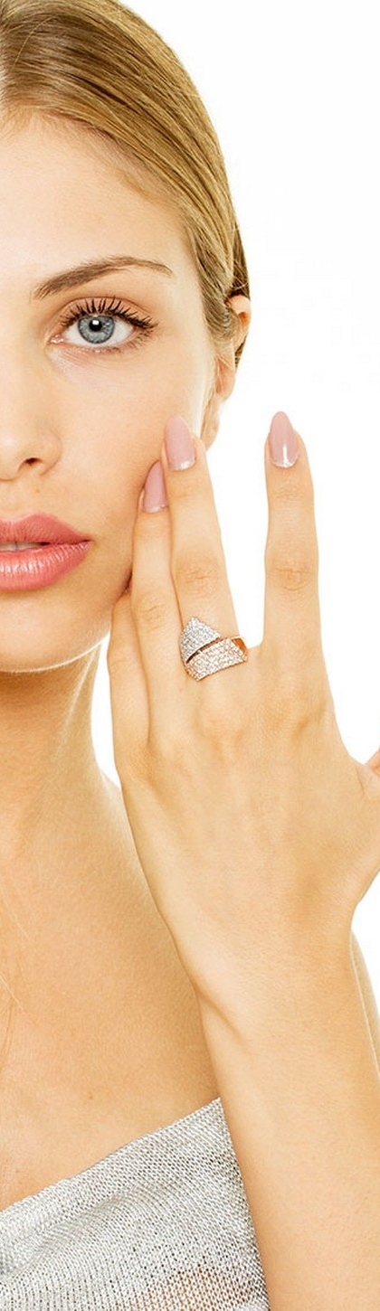Anello fascia contrariè in Oro Bianco e Rosa 18k con Diamanti.