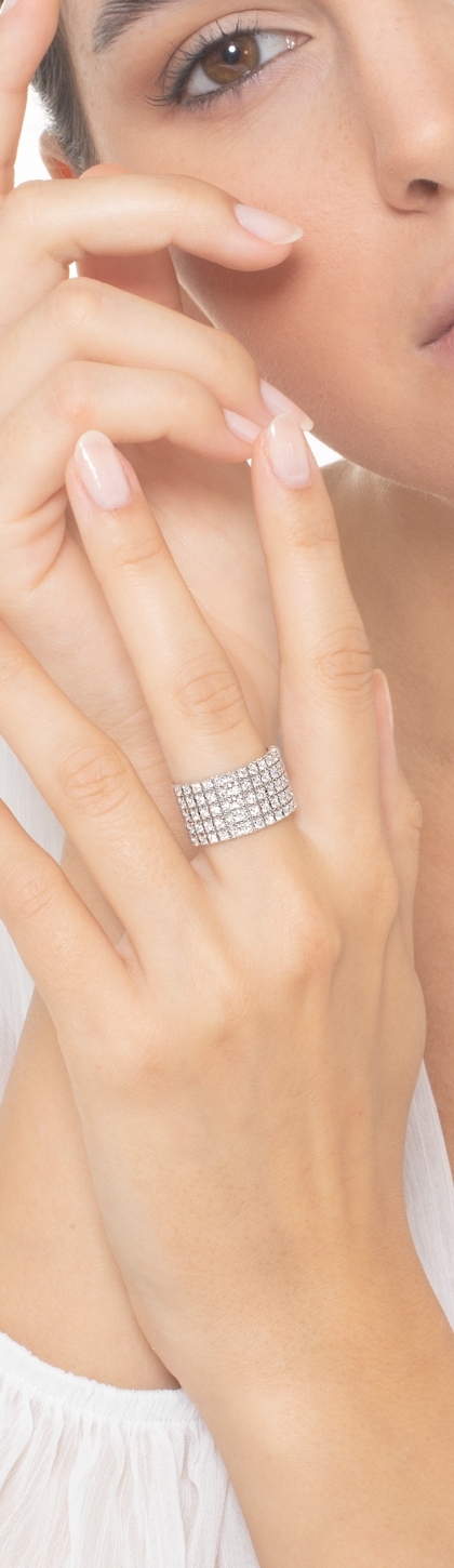 Anello fascia in oro bianco 18k con 5 file da 13 diamanti