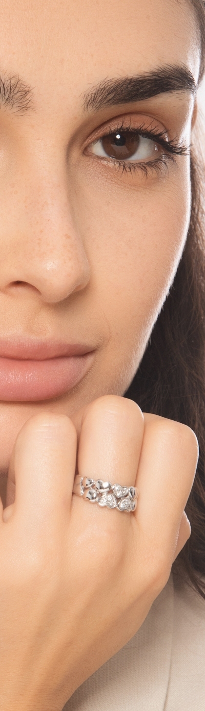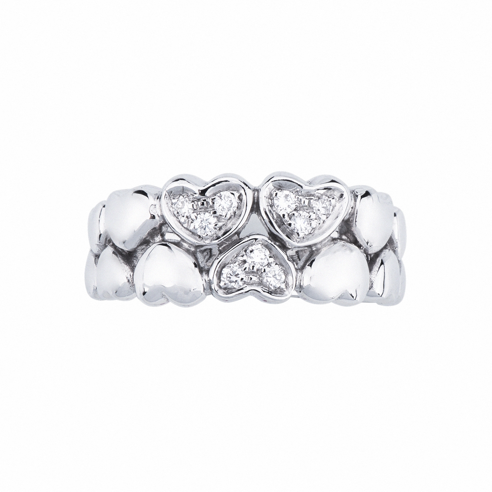 Anello fascia in oro bianco 18k con cuoricini in diamanti