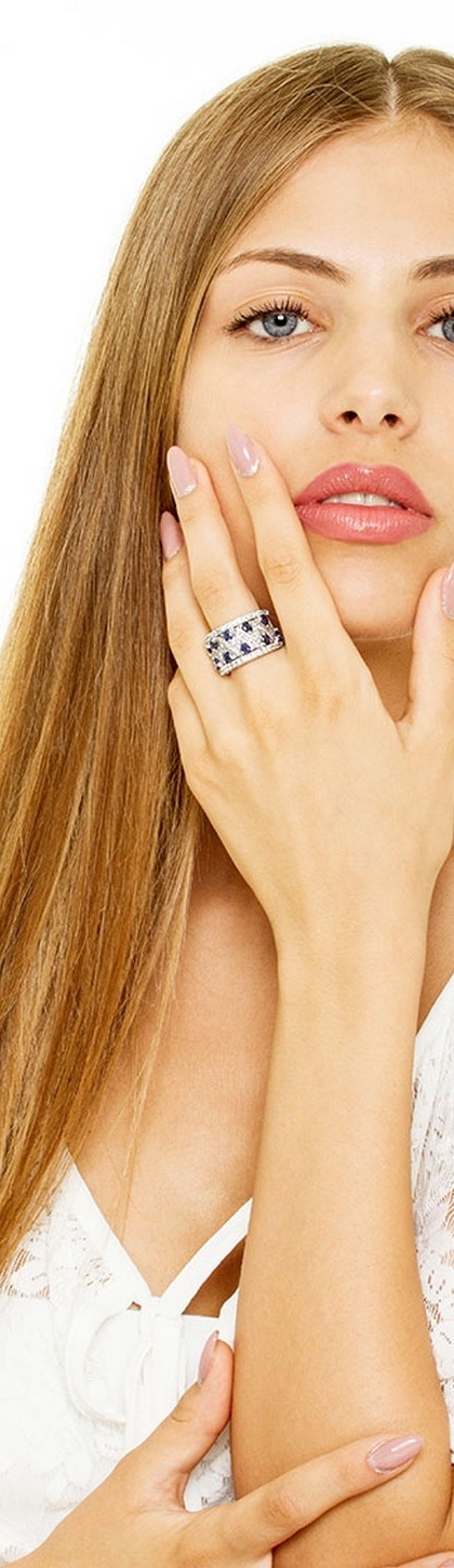Anello fascia in oro bianco 18k in zaffiri blu e diamanti