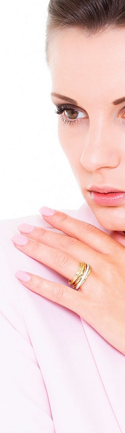 Anello filo della gioia in oro bianco e giallo 18k e diamanti
