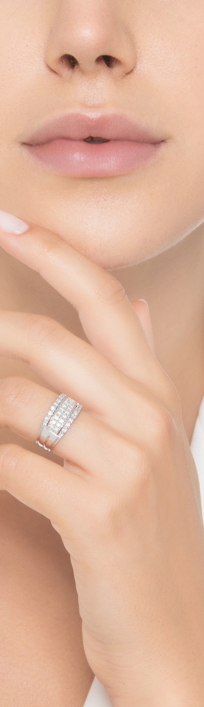 Anello in oro bianco 18k a 4 file con diamanti