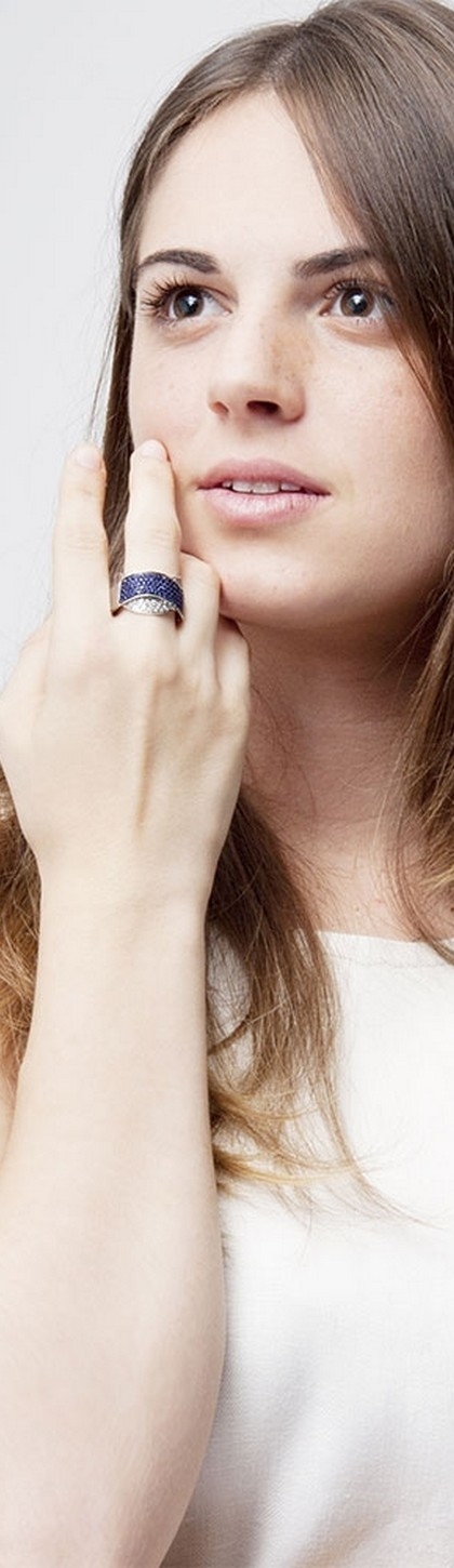 Anello in oro bianco 18k a fascione con Zaffiri Blu e Diamanti